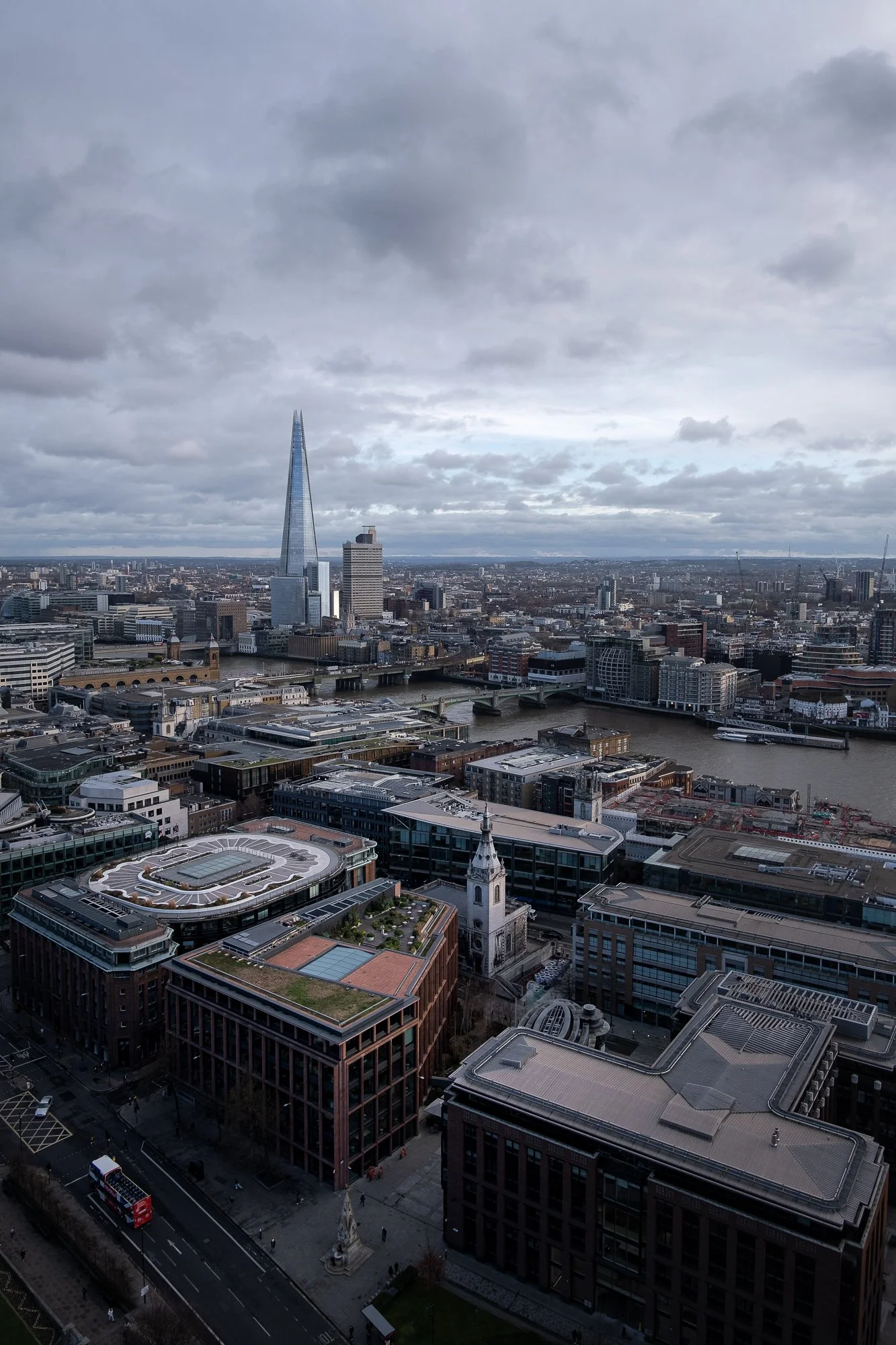 Another of the fuss-free rooftop locations is here at One New Change. Located above a shopping centre, this six-storey-high viewing level may not be the tallest, but it offers an unrivalled close-up view of St Paul’s Cathedral. With no booking required and generally easy access, it’s a convenient spot for quick visits or capturing the changing light at sunset. The open-air terrace also means you can shoot freely without glass or barriers in the way, making it a surprisingly versatile location despite its modest height.